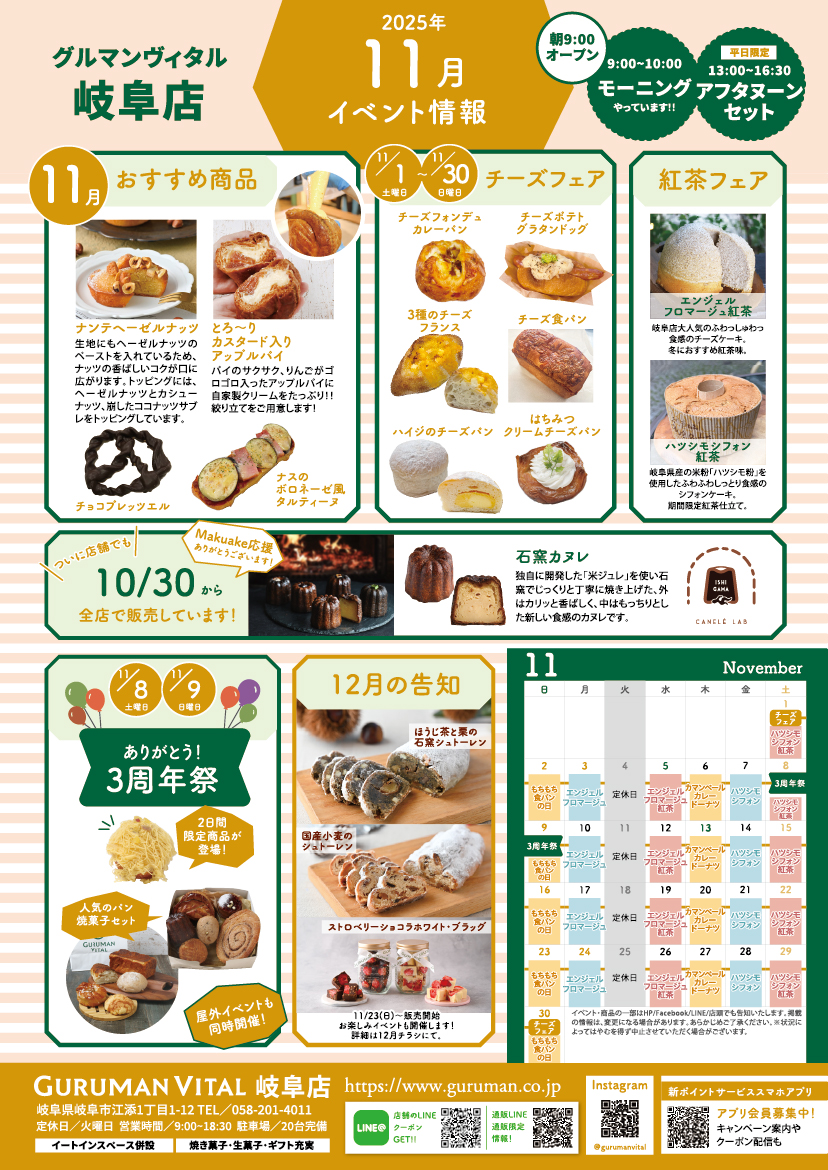 2025年10月24日 23:10 お知らせ 【岐阜店】2025年11月のイベント情報 こんにちは。 岐阜店の11月のイベント情報をお知らせします。 イベントチラシの画像は、下記の画像をタップすると大きく表示されます。 前の記事へ 次の記事へ