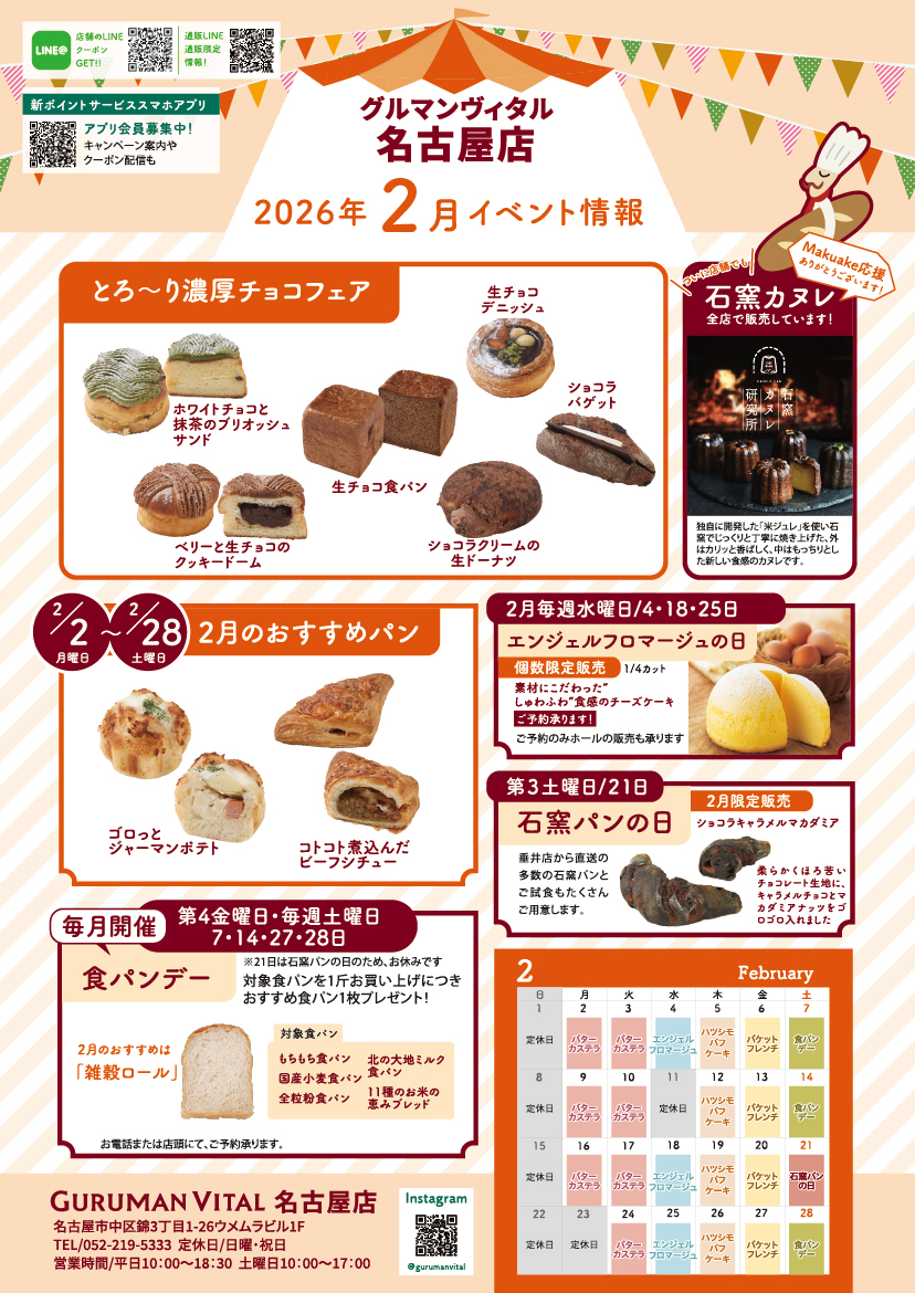 2026年01月28日 10:55 お知らせ 【名古屋店】2026年2月のイベント情報 こんにちは。 名古屋店の2月のイベント情報をお知らせします。 イベントチラシの画像は、下記の画像をタップすると大きく表示されます。 前の記事へ 次の記事へ